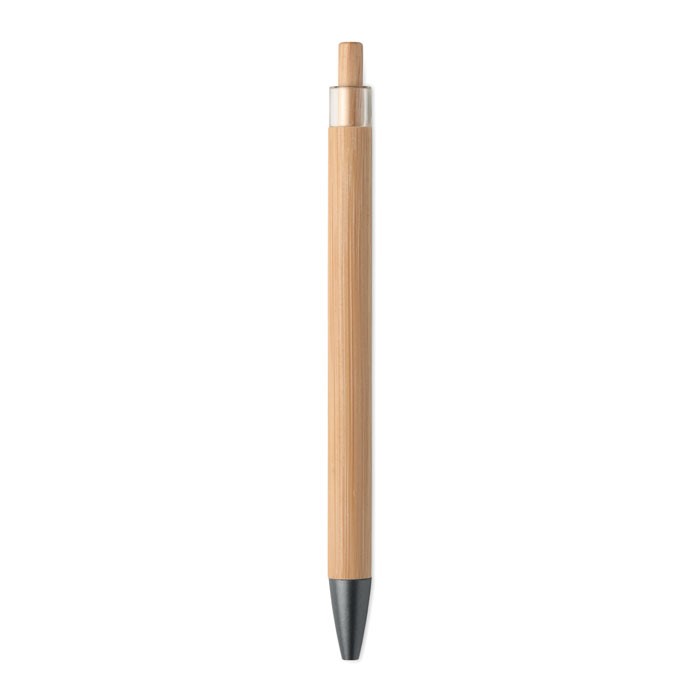 Prirodan izgled, profesionalni stil. ITEA kemijska olovka s gumbom ima bambusovo tijelo u kombinaciji s elegantnom metalnom kopčom, što je čini ekološki prihvatljivom i elegantnom. S glatkim pisanjem plavom tintom, to je praktična svakodnevna olovka koja služi i kao održivi promotivni poklon. Prilagodljiva s logotipom vaše tvrtke putem tiska ili laserskog graviranja.