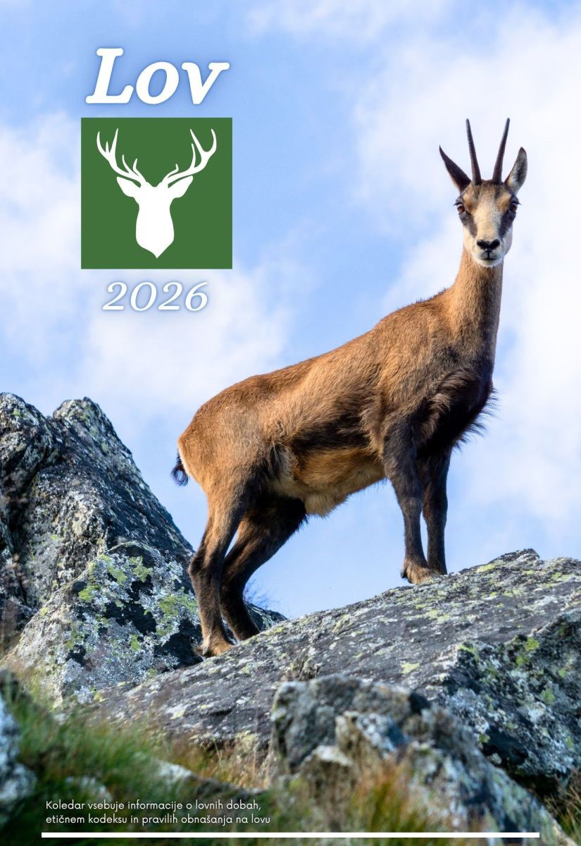 33cm x 54cm, 13 listova, zidni kalendar s motivima životinja. Označeni slovenski praznici. Dopisane korisne informacije o sezonama lova, etičkom kodeksu i pravilima ponašanja u lovu.