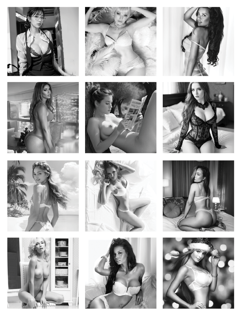 33 x 54 cm, 13-listni zidni kalendar sa slikama djevojaka iz snova. Označeni slovenski praznici, mjeseci i imena.