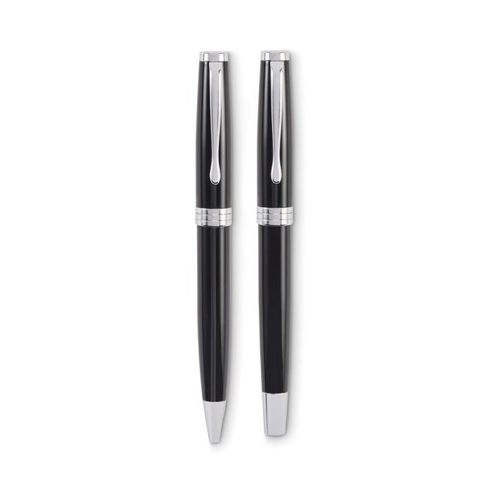 Dvostruka elegancija, dvostruki učinak. LYON SET kombinira kemijsku olovku s plavom tintom i roler olovku s crnom tintom, obje izrađene od recikliranog nehrđajućeg čelika. U profinjenoj poklon kutiji, ovaj je set dizajniran da impresionira u svakom profesionalnom okruženju. Prilagodljiv logotipom vaše tvrtke putem tiska ili laserskog graviranja, savršen je vrhunski promotivni poklon za klijente i partnere.