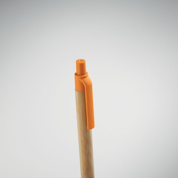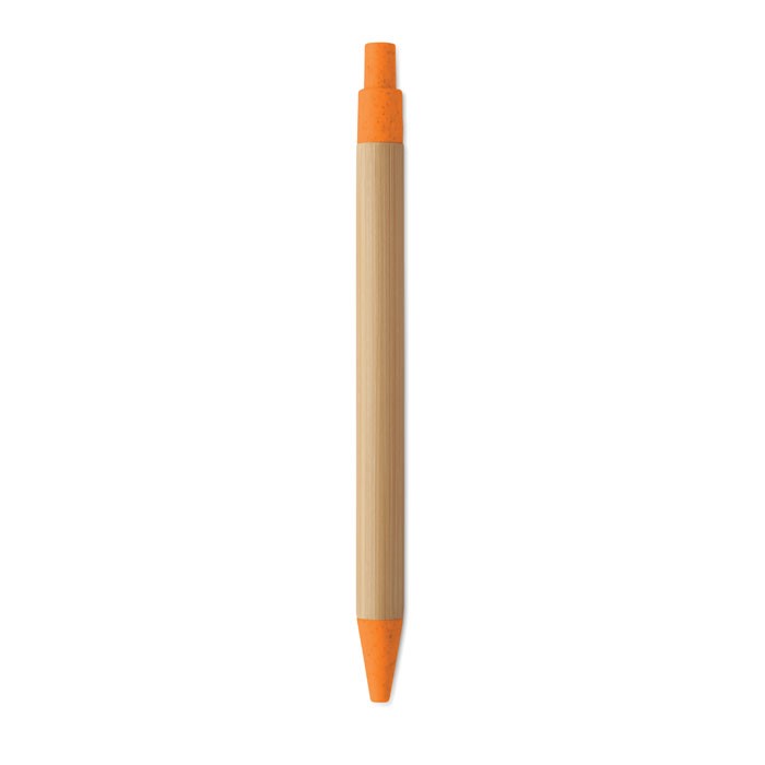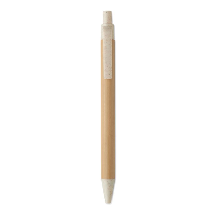 Prirodna elegancija za svakodnevno pisanje. Kemijska olovka ITEA COLOUR s gumbom kombinira bambusovo tijelo s dijelovima izrađenim od 50% pšenične slame i 50% ABS plastike. S glatkom plavom tintom, ekološki je prihvatljiv izbor koji spaja održivost s funkcionalnošću. Prilagodljiva logotipom vaše tvrtke putem tiska ili laserskog graviranja (na bambusovom tijelu), to je elegantan promotivni artikl za svakodnevnu upotrebu.