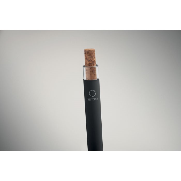 Održiva elegancija u vašoj ruci. BERGAMO kemijska olovka od recikliranog aluminija dizajnirana je s gumbom od prirodnog pluta i izdržljivom metalnom kopčom. Ispunjena plavom tintom, nudi glatko iskustvo pisanja uz podršku ekološki prihvatljivih izbora. Prilagodljiva logotipom vaše tvrtke laserskim graviranjem, to je elegantan i održiv promotivni poklon.