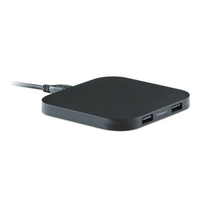 Podloga za punjenje s 2 priključka 2.0 čvorišta i USB priključkom računala za stvaranje bežične stanice za punjenje pametnih telefona. Izlaz DC 5V/ 1.0A. Kompatibilni najnoviji androidi, iPhone® 8, 8S i X i noviji.