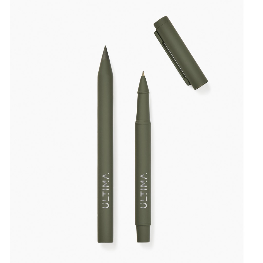 Ovaj moderan i elegantan set olovaka uključuje dvije olovke: vječnu olovku i klasičnu kemijsku olovku s poklopcem i kopčom. Dizajnirane za stil i funkcionalnost, ove olovke izrađene su od recikliranog nehrđajućeg čelika s RCS certifikatom, s gumenom površinskom prevlakom za udoban zahvat i mat završnom obradom. Obje olovke imaju uravnoteženu težinu koja osigurava stabilnost i pisanje bez napora.