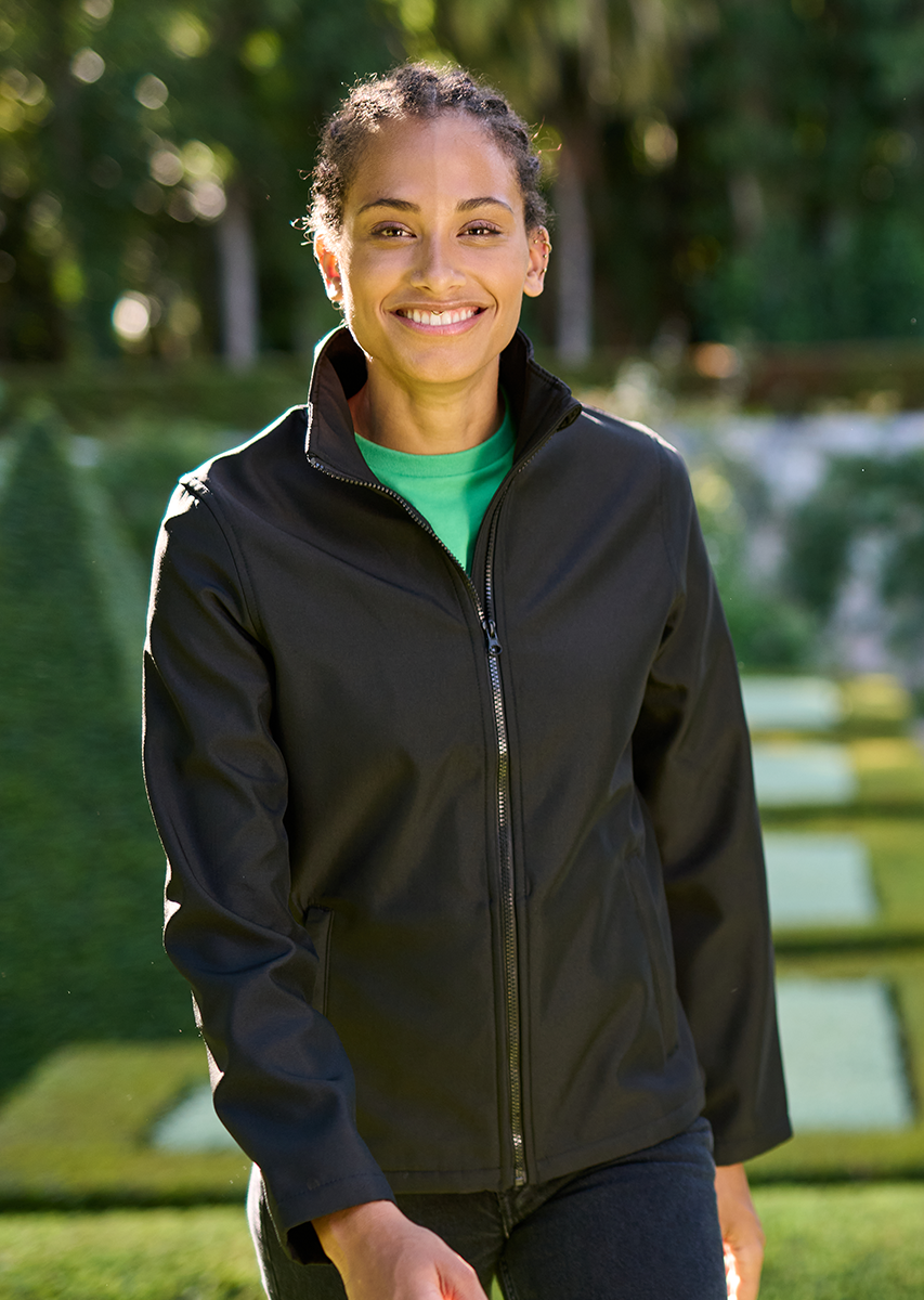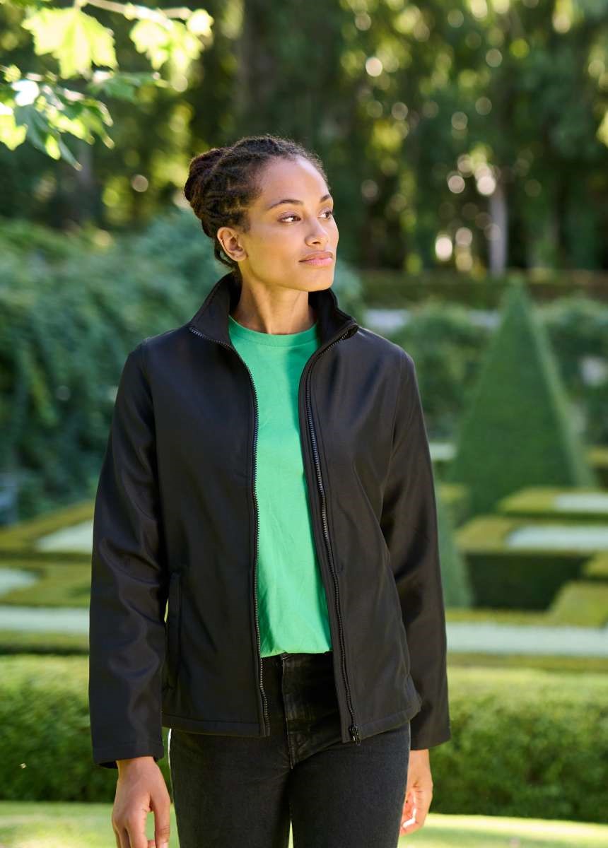 Dizajnirana za udobnost i prilagodbu, ova ženska softshell jakna je vodoodbojna i izrađena s naglaskom na održivost.